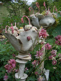 Seu lindo jardim exótico com criações diferentes: flores de argila, vasos excentricos colocados em muros de pedra dão um ar poético ao lugar.